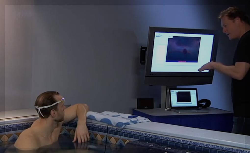 Former Long Horns swimming coach Kim Brackin training swimmers in an Endless Pool